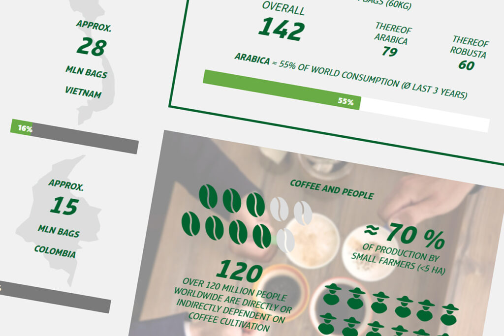 Global coffee production reached 173 million bags in 2024/25, with Brazil, Vietnam, and Colombia leading the way. Around 70% is grown by smallholders, and over 120 million people depend on coffee farming. Climate change threatens up to half of current growing areas by 2050, making sustainability more crucial than ever.