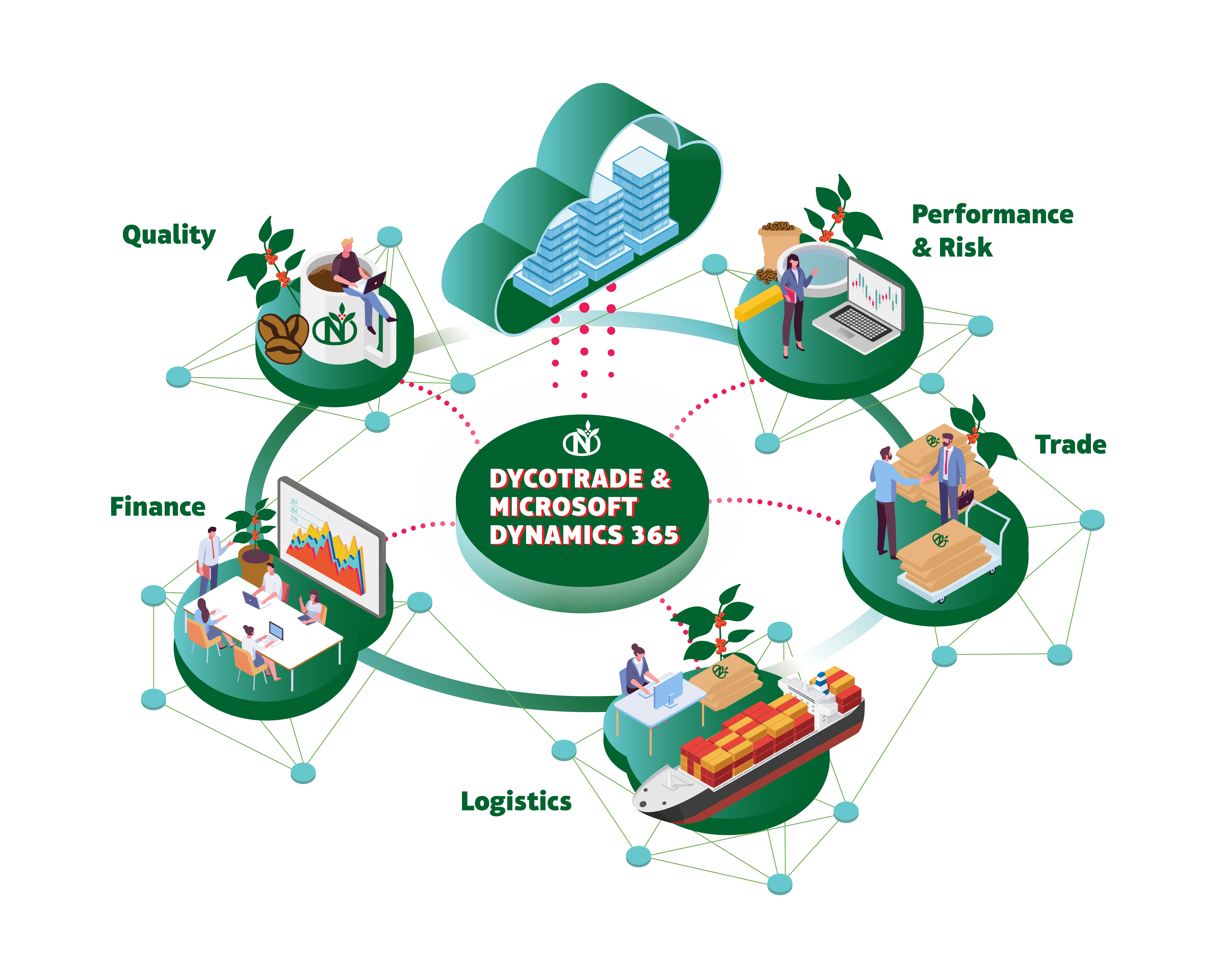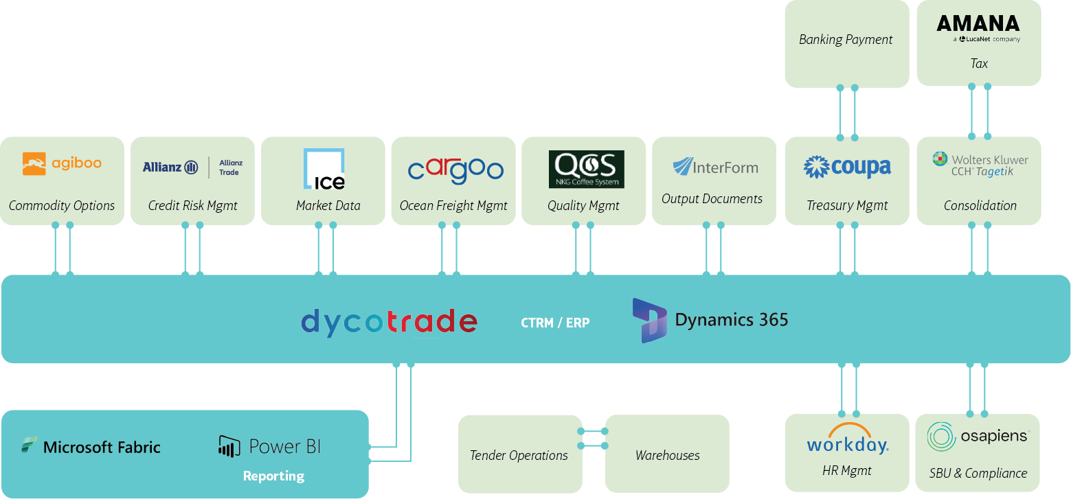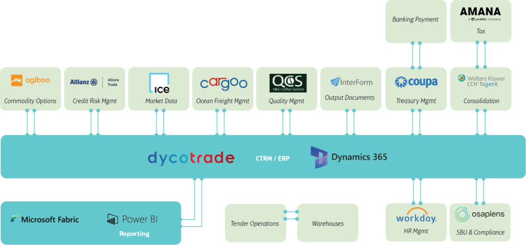 Muchos proyectos, algunos de lo cuales mencionaremos más adelante, están siendo desarrollados en paralelo. Mientras que el equipo DTP se centra en la solución medular (DycoTrade y Microsoft Dynamics 365), otros equipos o departamentos se encargan principalmente de integrar otras soluciones periféricas. Incluso si estos proyectos aún no ofrecen una visión global, todos estos cabos aparentemente sueltos terminarán atándose entre sí y originarán el ecosistema digital global de NKG: una red de herramientas, plataformas y tecnologías digitales interconectadas que definirán un estándar global para todos los procesos comerciales de NKG, mientras que las integraciones conservarán la flexibilidad necesaria para responder y adaptarse a los requerimientos locales. Este ecosistema permitirá mejorar la recopilación y el análisis de datos, lo que traerá consigo una toma de decisiones más eficaz e incrementará la eficiencia de los procesos.